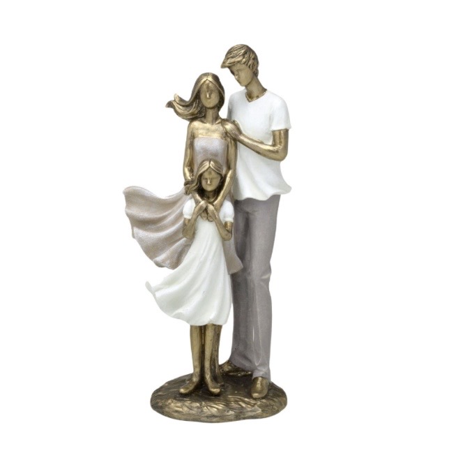 Nossas Esculturas Decorativas Família, são perfeitas para trazer beleza ao ambiente. Caso esteja pensando em modificar um espaço sem mexer em muita coisa, aposte nas esculturas, elas vão deixar qualquer local mais charmoso e sofisticado. Esta peça é uma representação que transborda amor e ternura em um momento em Família. Experimente combinar essa peça a outros objetos, como: livros e caixas decorativas, vasos de vidro ou onde sua imaginação permitir. Descrição: Escultura Familia Casal Com Filha Em Resina Largura - 12,5cm / Altura - 26cm / Comprimento - 9,5cm