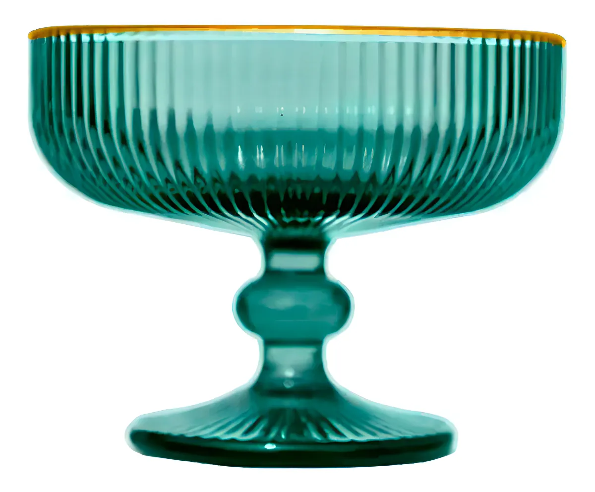 Transforme suas sobremesas em verdadeiras obras de arte com o jogo de 6 taças de sobremesa verde com borda dourada da renomada marca L'Hermitage. Cada taça, com capacidade para 310 ml, apresenta um design elegante e sofisticado, ideal para impressionar seus convidados em jantares ou celebrações especiais. Com 10 cm de altura e 12 cm de diâmetro na boca, são perfeitamente dimensionadas para servir porções generosas de suas delícias favoritas. Feitas de vidro de alta qualidade, as taças possuem um acabamento canelado frisado que agrega um toque de exclusividade à sua mesa. Este é um produto novo, que não inclui tampa e não é personalizado, mas que certamente se tornará um item imprescindível na sua coleção de utensílios de mesa. Encante-se com o modelo Cameratta e faça de cada refeição um momento inesquecível!