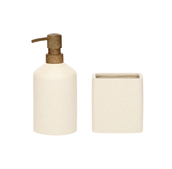 Perfeito para compor uma bancada funcional e charmosa, o Kit para Banheiro em Cerâmica Bege une praticidade, durabilidade e design atemporal, deixando o ambiente ainda mais aconchegante e organizado.